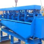 Concentrador de minerales gravimétrico por pulsaciones inducidas de agua y sincronizadas en dos o tres tiempos y criba clasificadora con depósitos de fácil drenado. Proceso de recuperación utilizado particularmente en las industrias mineras para metales no ferrosos con estructura simple, el gran rendimiento.