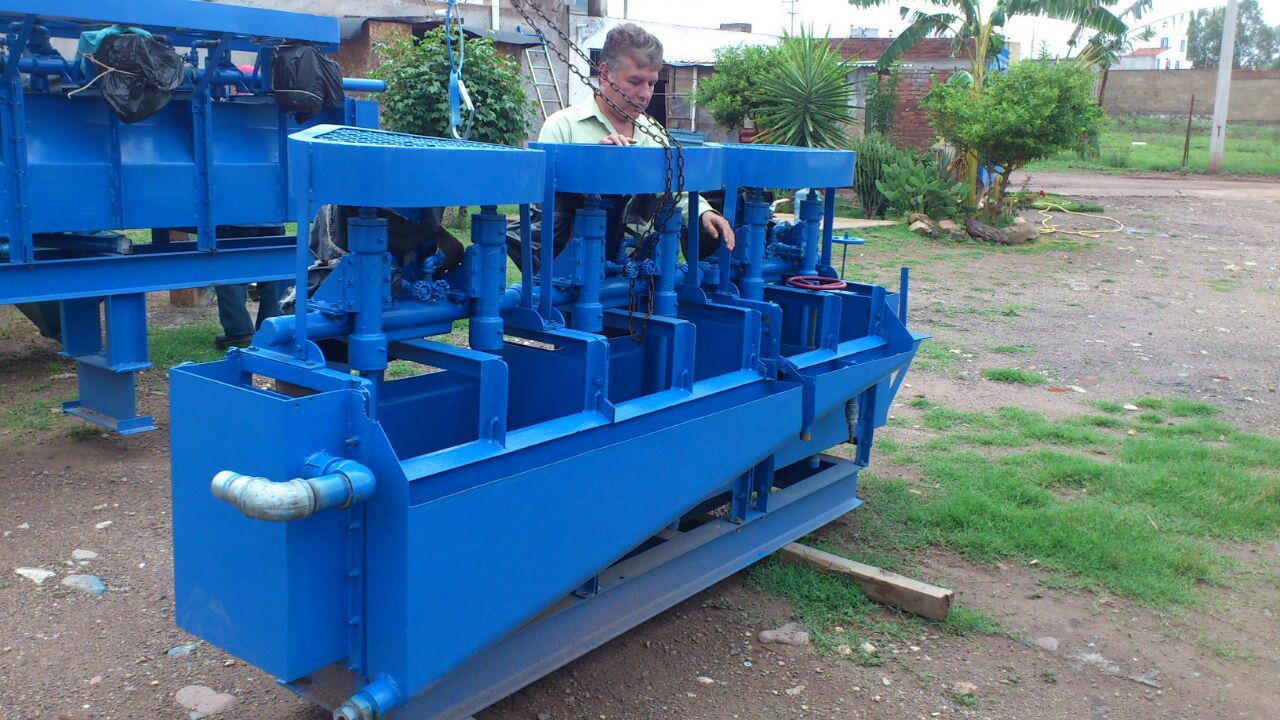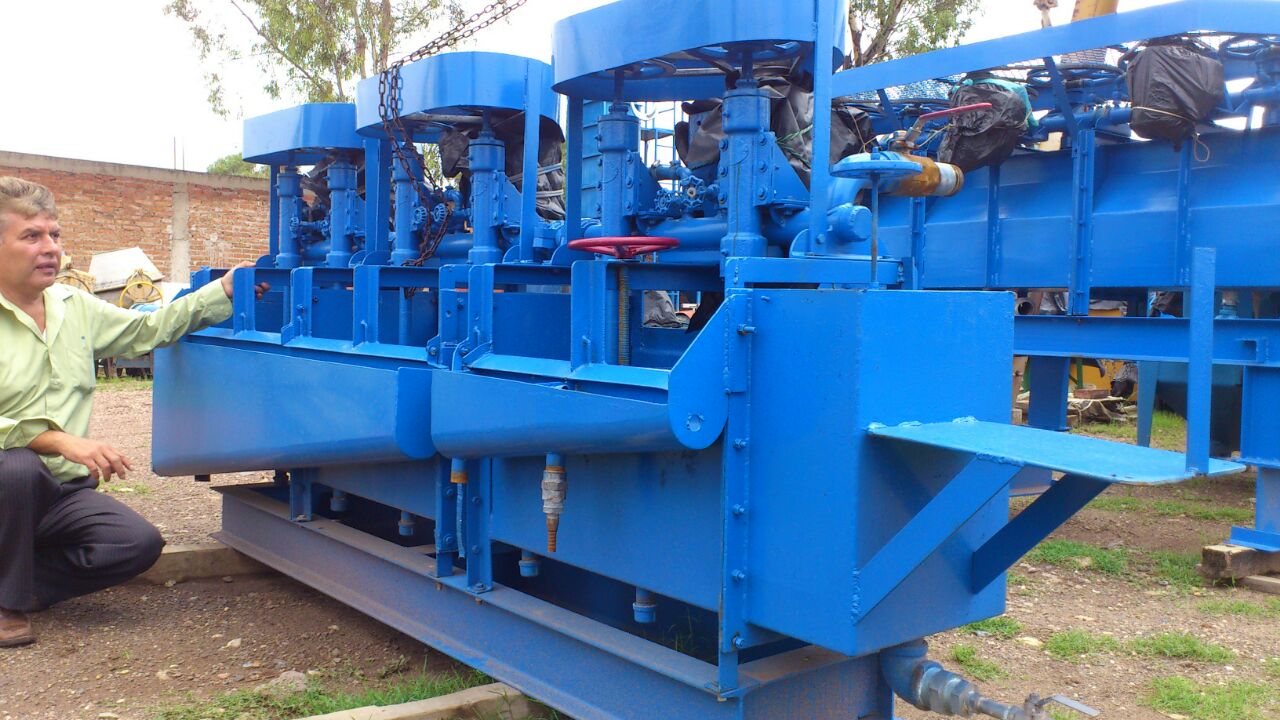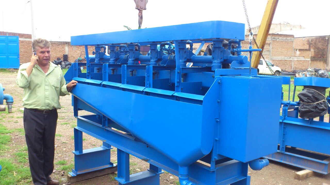 Concentrador de minerales gravimétrico por pulsaciones inducidas de agua y sincronizadas en dos o tres tiempos y criba clasificadora con depósitos de fácil drenado. Proceso de recuperación utilizado particularmente en las industrias mineras para metales no ferrosos con estructura simple, el gran rendimiento.